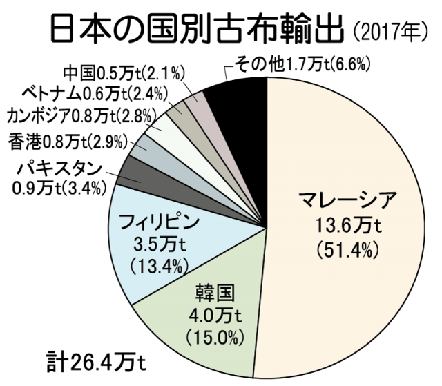 日本の国別古布輸出