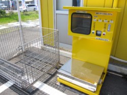 山口資源とエクセムが共同開発した、現金で買い取る無人古紙回収機