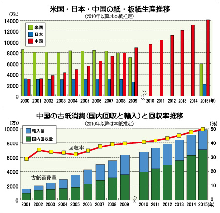 【2015年中国予測】生産量は1億4,000万トン、古紙消費量は1億トン