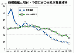 2000年代に入り、伸び悩んでいた国内の古紙消費量だが、今年は大幅な消費減が避けられない。今年1-7月の消費動向(14.9%減)からみて年間消費量は1,650万トン前後にとどまる見通し。前年比250万トンもの消費減だが、1,600万トン台というのは1990年代後半の消費水準。10年前にタイムスリップすることになろう。 ちなみに紙・板紙生産は平成元年(1989年)の水準、20年前にタイムスリッ...