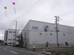完成した仙台リサイクルセンターの本社新社屋 アドバルーンが目立つ
