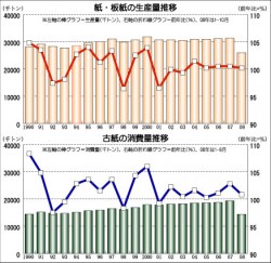 紙の10月生産(91.7%)、単月で最大の落ち込み