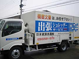 機密書類出張細断車サイダーンの日本資源流通に納車された1号車