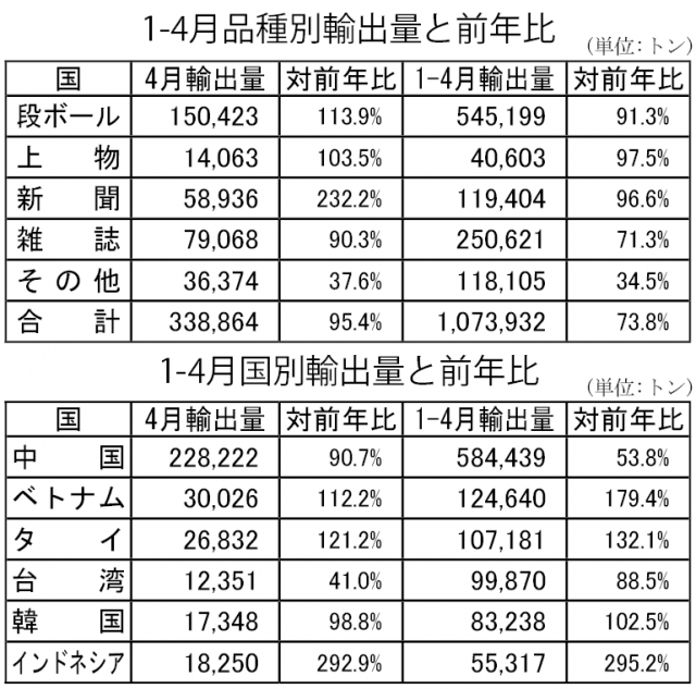 4月の古紙輸出入
