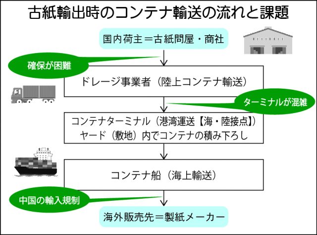 古紙輸出時のコンテナ輸送の流れと課題