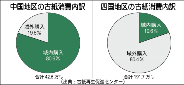 中国四国地区の古紙消費内訳