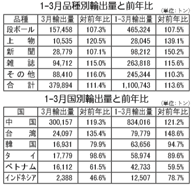 3月の古紙輸出入