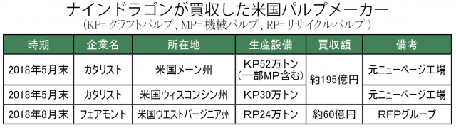 ナインドラゴンが買収した米国パルプメーカー