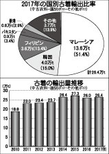 昨年の輸出量はマレーシア増加