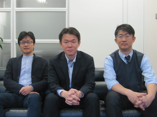 日本マテリオの孫共同取締役(右)、大畑部長(中央)、李常務(左