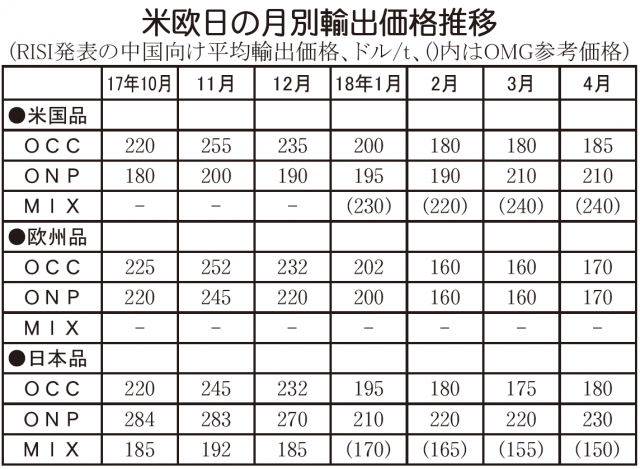 【中国の古紙市況】