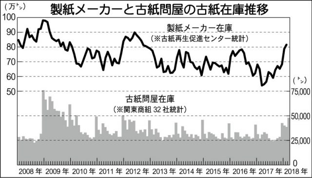 古紙問屋の在庫も急増