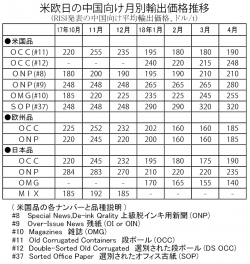 米国の古紙輸出価格が上昇してきた。特に上昇しているのが、先々週号で報道したナンバー12(以下、#表記)の選別した段ボール古紙。正式にはダブル・ソーティッド・オールド・コルゲイトで、2回選別した段ボール古紙の意味。略称ではDS OCCと表示されている。  米国の輸出価格は、これまでは#11のOCCが指標となっていたが、現在は#12が指標になっている。3月から中国の環境基準であるGB基準が改定され...