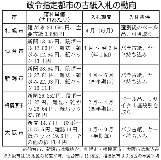 政令指定都市の古紙入札の動向